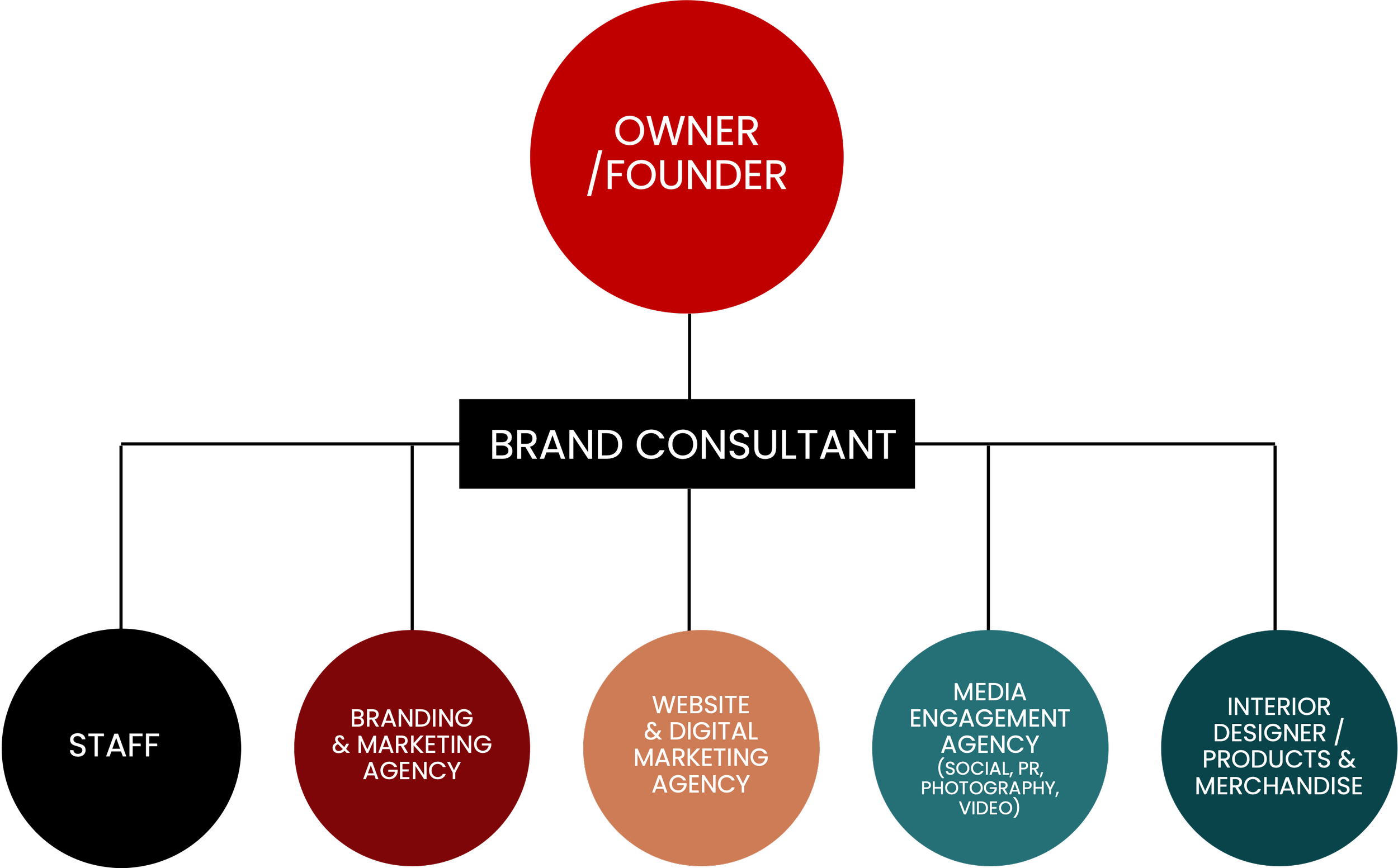 The below strategy is what I like to call “THE TO THE POINTER” This is where the Owner or Founder hires a single Brand Consultant to become the overseer of each design & marketing team to ensure needs are fulfilled.