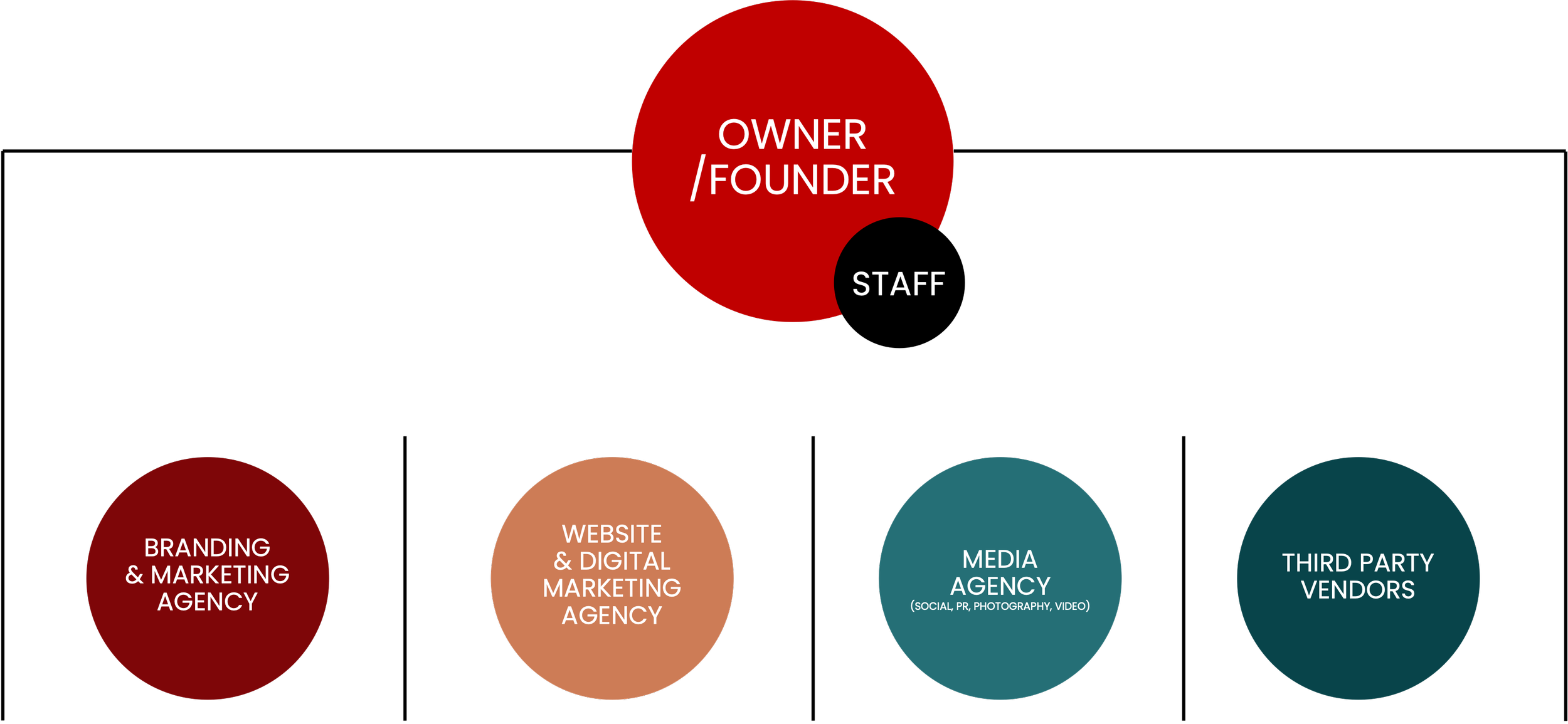 The below strategy is what I like to call “THE OVERSEER” This is where the Owner or Founder that hires a separate but consolidated specialty partner team to fulfill design and marketing needs. Each team you hire has minimal crossover specialties and are willing to work collaboratively with each other, BUT the Owner/Founder still has a high level of direct overseeing control over each team.